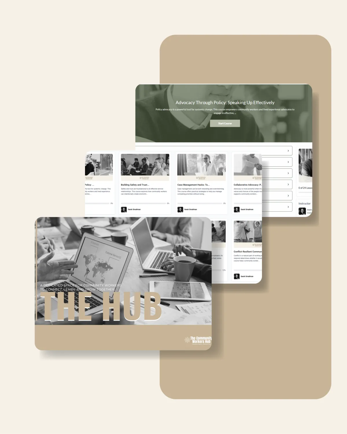 The Hub is more than an online platform — it’s a community-driven learning space where community workers, advocates, and organisations come together to build skills, share ideas, and embed best practice.